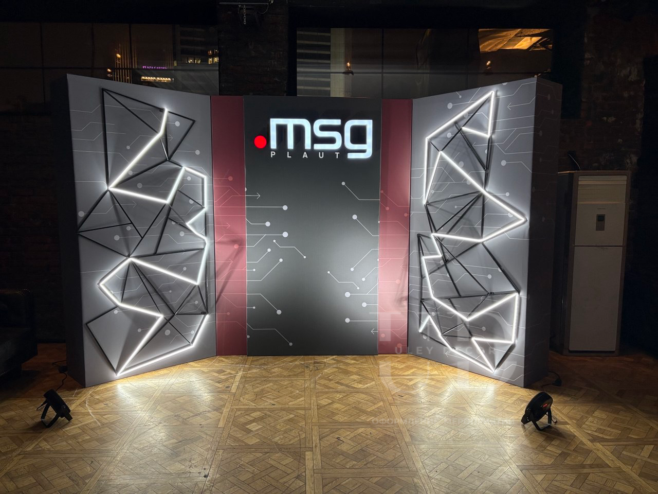 Мы предварительно выезжали на осмотр площадки и поняли что освещение в ресторане приглушенное, поэтому элементы с подсветкой смотрелись особо заметно и выразительно.